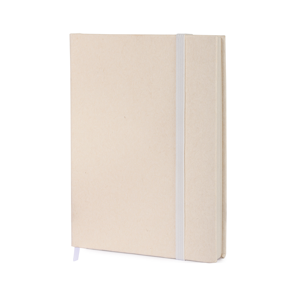 realizzato con cartoni riciclati del latte. Dopo aver separato i materiali dei cartoni del latte, la carta viene utilizzata per creare il blocchetto. Con fogli a righe (80 fogli), cordino segnalibro, chiusura con elastico.
