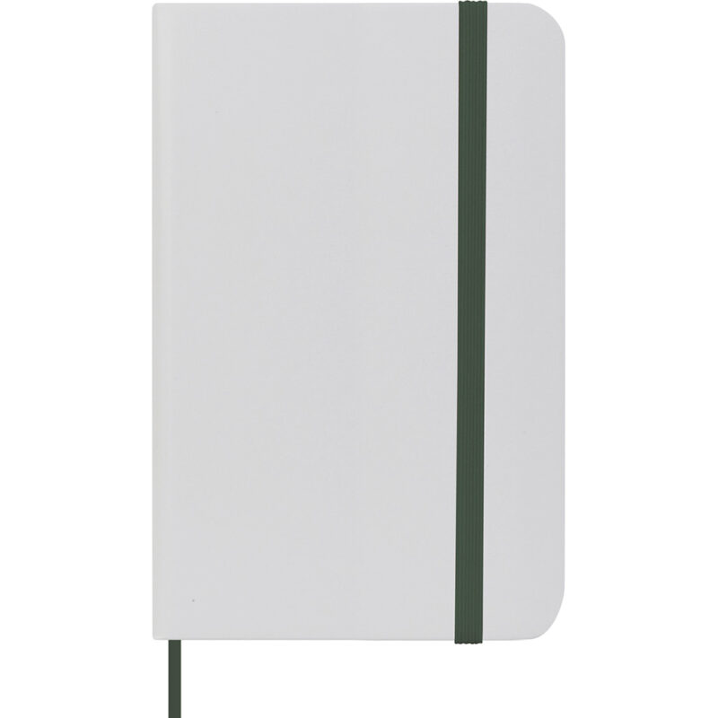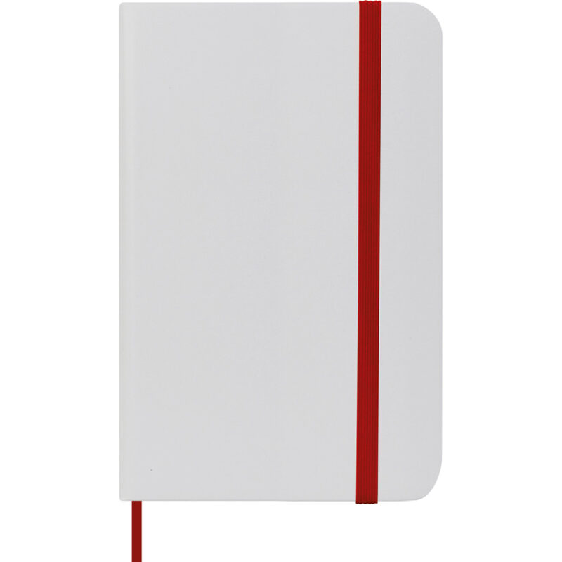 blocco per appunti (80 fogli), cordino segnalibro, chiusura con elastico.