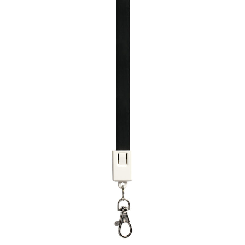 con connettore unico micro USB e lightning e moschettone in metallo.